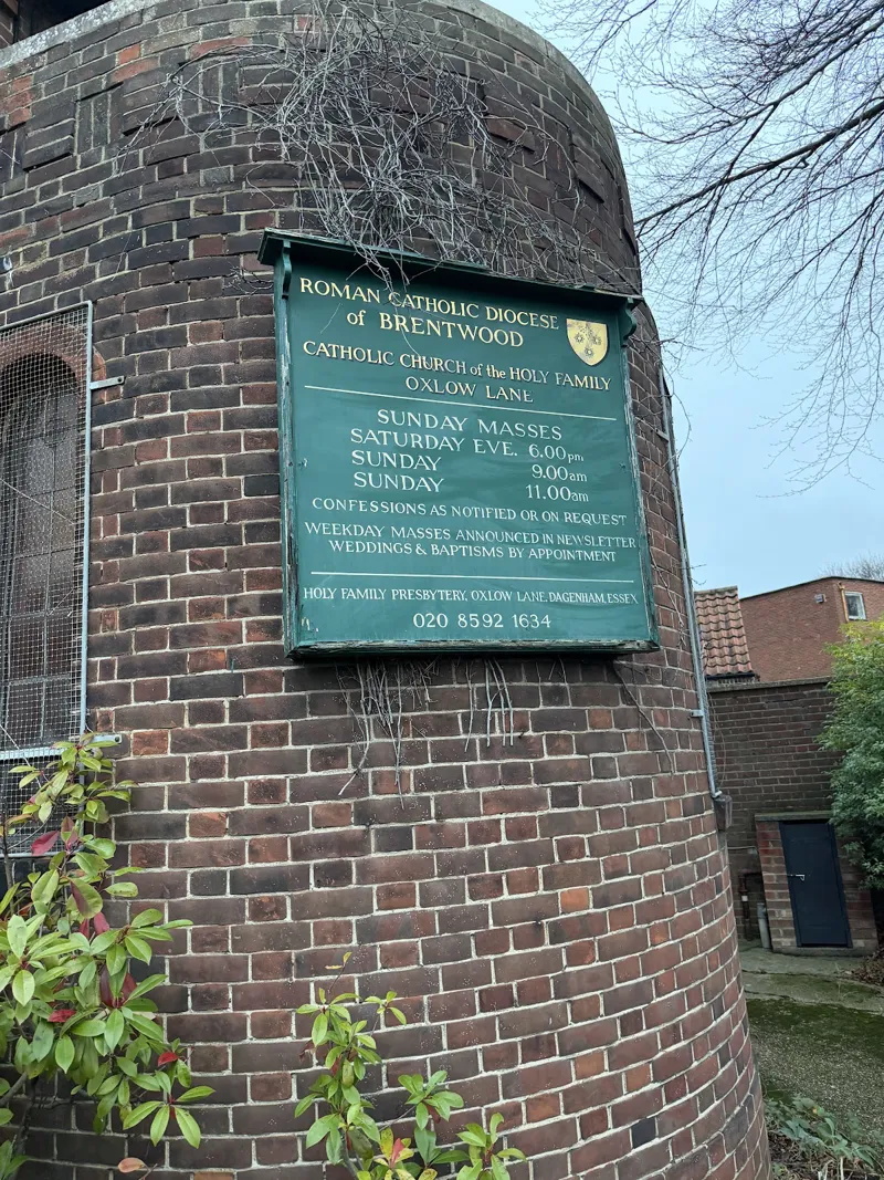 Share travel tips, parking info, public transit routes, and directions to help fellow community members find their way to Holy Family Church, Dagenham (Dagenham, England).